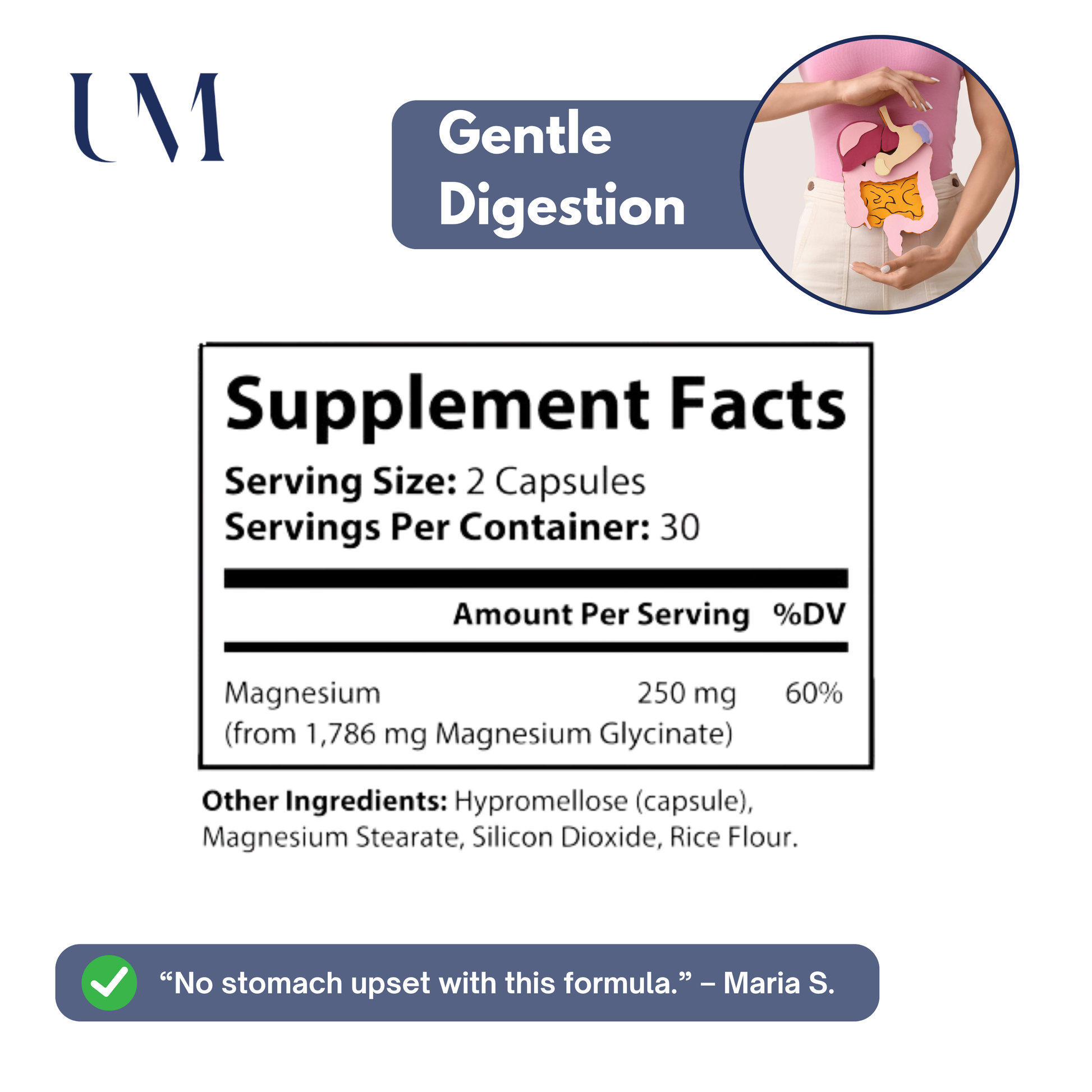 Unlike harsh sleep aids, Magnesium Glycinate works with your body. It calms the nervous system, eases muscle tension, and slows down racing thoughts—helping you DRIFT into deep, restorative sleep naturally.